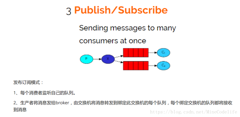 1)work queues不用定义交换机,而publish/subscribe需要定义交换机。