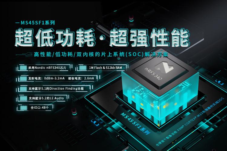 创新微MinewSemi作为物联网无线通信领域的创新者,紧跟物联网无线通信领域发展大潮,自主研发生产的MS45SF1是一款高性能、低功耗、双内核的高端蓝牙5.3模块。