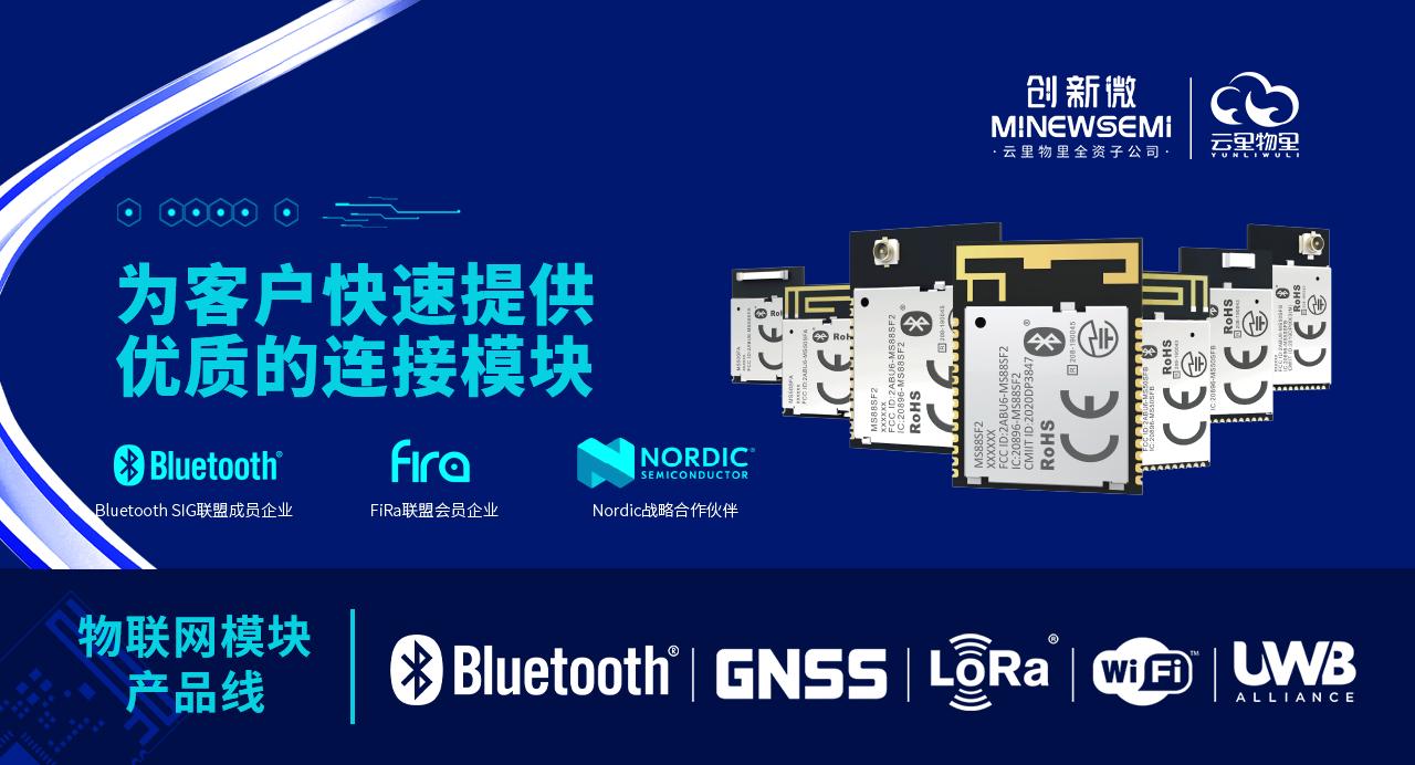 创新微MinewSemi是云里物里全资子公司,在低功耗通讯连接方面拥有专业的产品研发经验和雄厚的技术积累,自主研发BLE、Wi-Fi、LoRa、UWB、GNSS、LoRaWAN等全面的物联网模块产品,其以功耗低、认证全、连接稳定、抗干扰能力强等诸多特点,已应用在智能家居、智能制造、工业物联、智慧城市、智慧农业、汽车周边、医疗健康等数十个领域。
