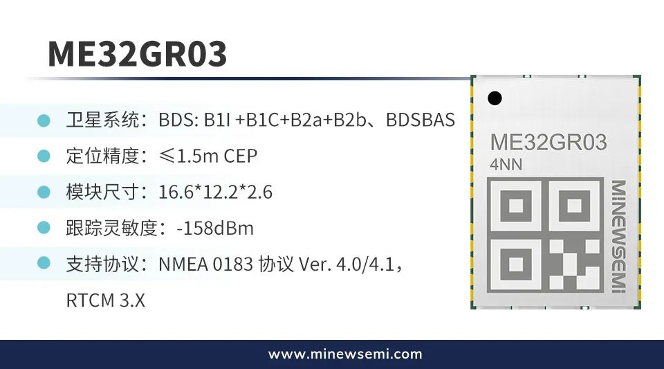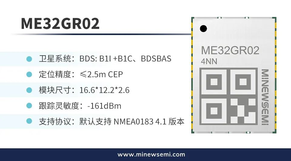 创新微MinewSemi首次推出的两款单北斗模块ME32GR02、ME32GR03 新品正式上架,是由国内顶尖研发团队精心打造,实现了从芯片到模块的完全国产自主化生产。在技术上,均支持高精度BDS定位技术,采用SMD工业级设计和制造ROHS工艺,内置抗干扰技术,可进行干扰检测与移除。在功能上,具有高灵敏度、低功耗、抗多径、强抗干扰能力等性能,能够满足不同物联网行业和多领域的应用需求。以下为模块新品特点介绍: