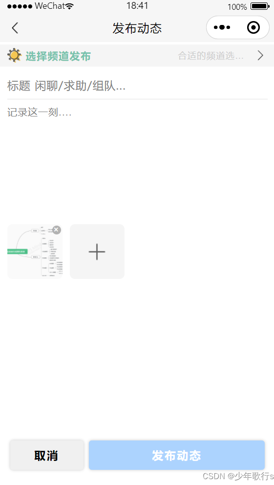 用户选择图片前,变量photo为空数组。用户选择图片后,将图片缓存地址存入变量,即可渲染已选择图片。且选择图片按钮后移。