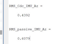 3、对比加入控制后,水平粗糙路面上,滤振效果。均方根值上有所提升。