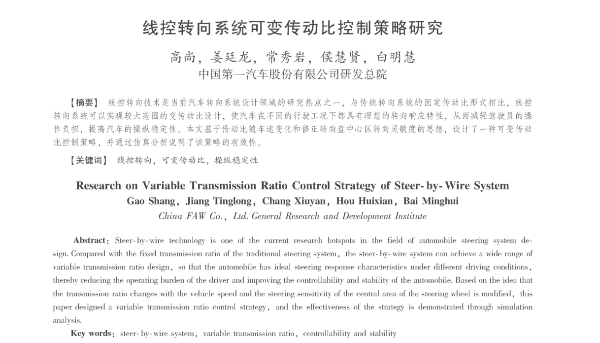 可变传动比策略逻辑主要参考以下这篇一汽的论文: