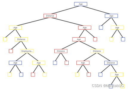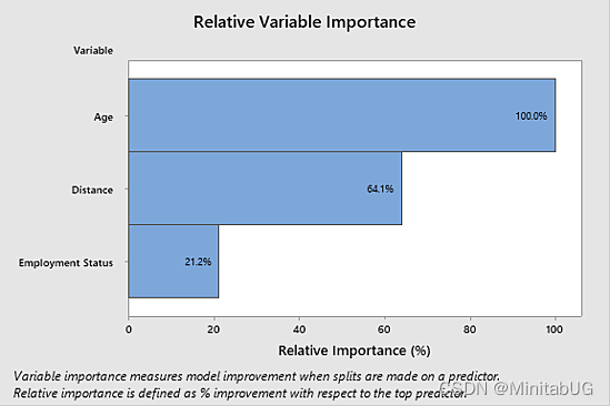 快速评估上方变量重要性图后发现,患者的年龄才是影响他们是否会再次光顾诊所的意愿的最佳预测变量,距离的影响程度紧随其后,而就业状态的重要性最低。