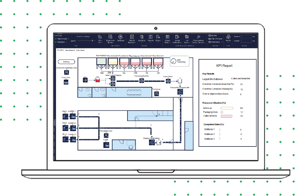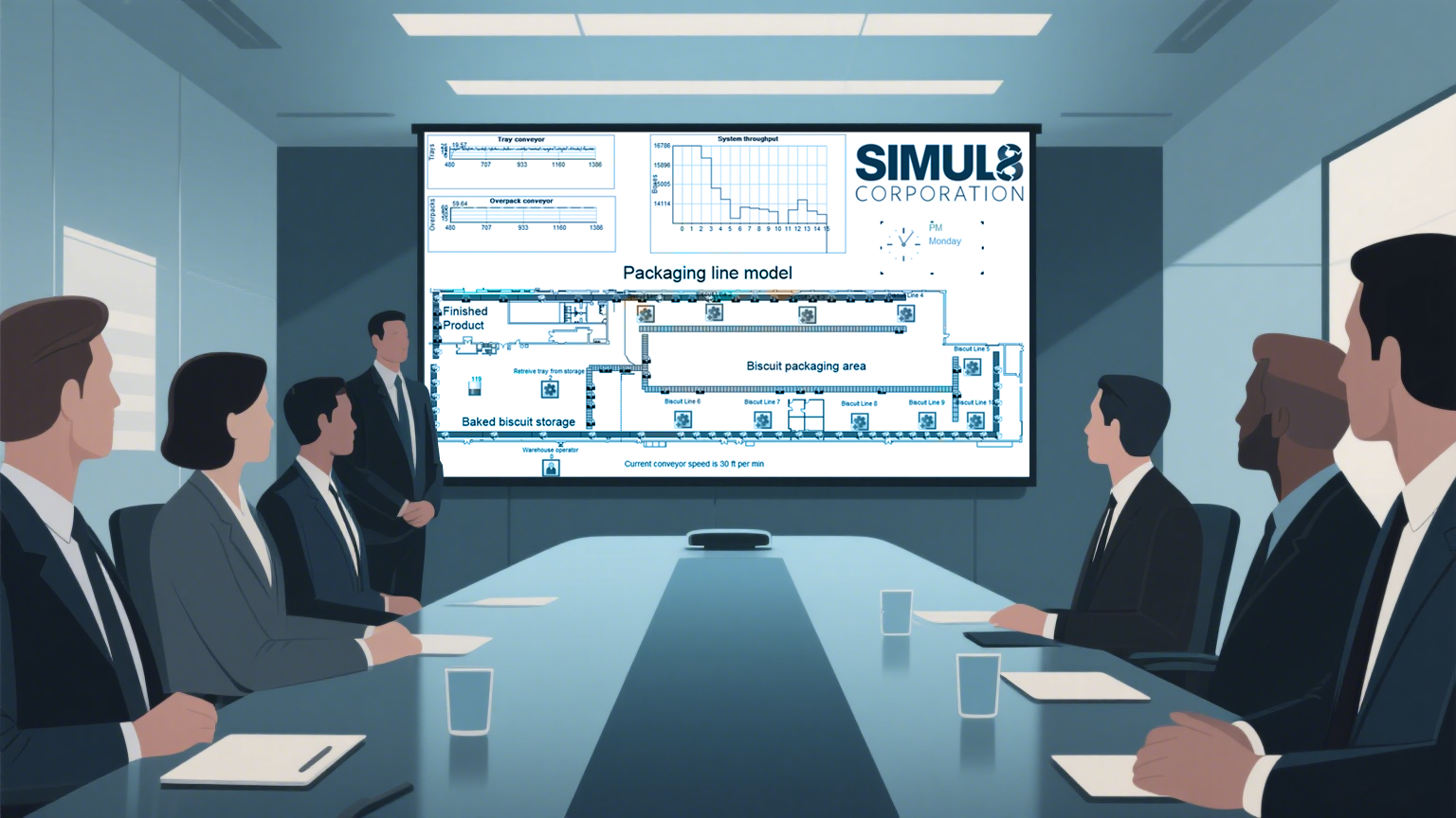 相较于数据矩阵或静态图表,仿真模型能呈现真实系统的动态流程图解。这种可视化效果让观众直观理解建模逻辑——他们可以追踪单个项目从起点到终点的完整轨迹。这不仅帮助团队验证当前系统状态,更能预判未来系统形态。显然,动态演示比数据表格具有更强的说服力。