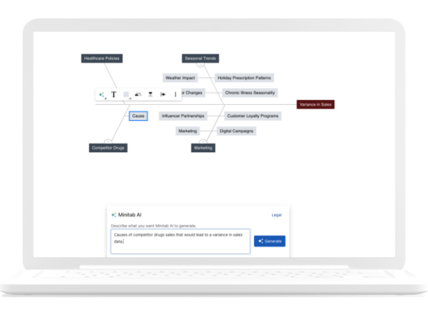 以清晰的目标开启优化之旅。借助 Minitab 头脑风暴工具,用思维导图、关键质量特性树(CTQ 树)和鱼骨图梳理思路。AI 辅助功能会帮你挖掘更多潜在原因与关联要素,让根本原因分析更高效、更具洞察力。