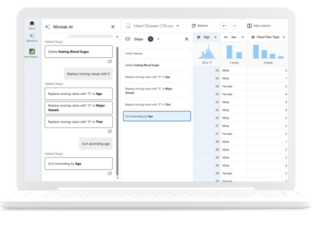 Minitab Data Center(数据中心)可集中管理数据,并借助对话式 AI 实现数据准备自动化,既节省时间,又能为分析工作提供干净、可靠的数据支撑。