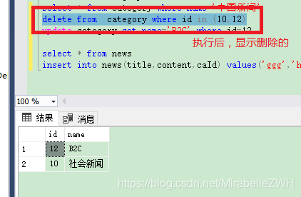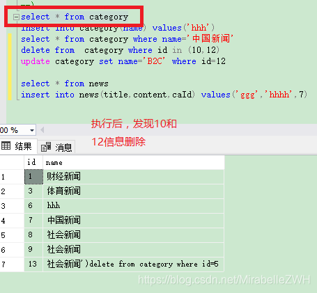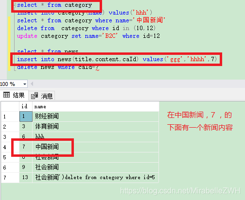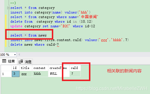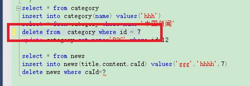 但是,此时,不能删除,因为,触发器用的是after,是在删除category后再删除news,明显是不行的,所以,用代替