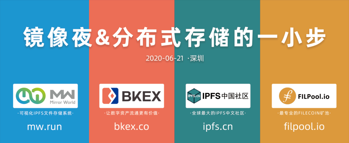 2020年6月21日,由可视化IPFS文件存储系统—镜像网络MW联合全球最大的IPFS中文社区—IPFS中国社区、最专业的Filecoin矿池—FILPOOL、让数字资产流通更有价值—BKEX举行的《镜像夜-分布式存储的一小步》酒会于深圳市海上世界明华轮正式落下帷幕。