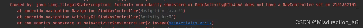 引起:java.lang.IllegalStateException:活动 com.udacity.shoestore.ui.MainActivity@f2c4e66 在 androidx.navigation.Navigation.findNavController(Navigation.java:61) 的 2131362101 上没有设置 NavController