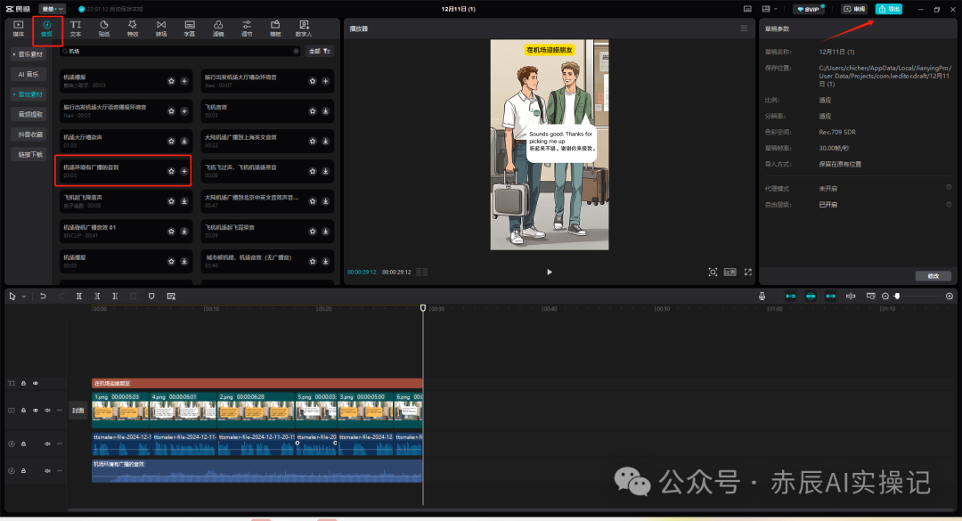 最后一步就将音频和图片导入进剪映中,根据音频匹配对应图片,最后添加个主题,设置环境声音,设置封面,就可以导出视频啦!