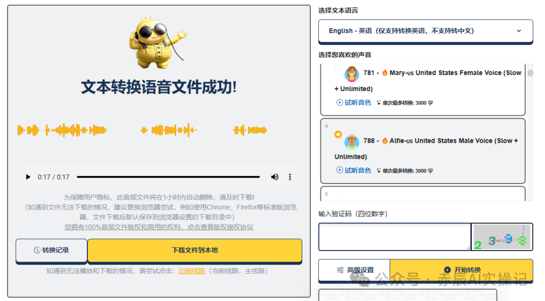 然后需要将文本内容进行制作生成音频,这步可以用免费的AI文本转语音工具TTSmaker来制作,当然,如果你想要追求极致的配音效果,那么可以选择像微软AI配音工具之类的也是可以的。