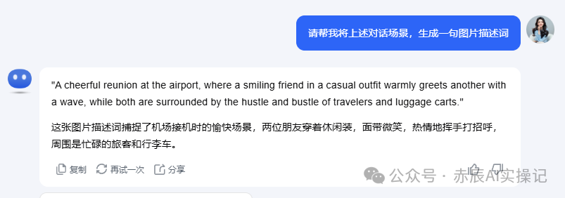 这样就可以获得原创的英语情景对话文案和对应的场景画面描述词啦!