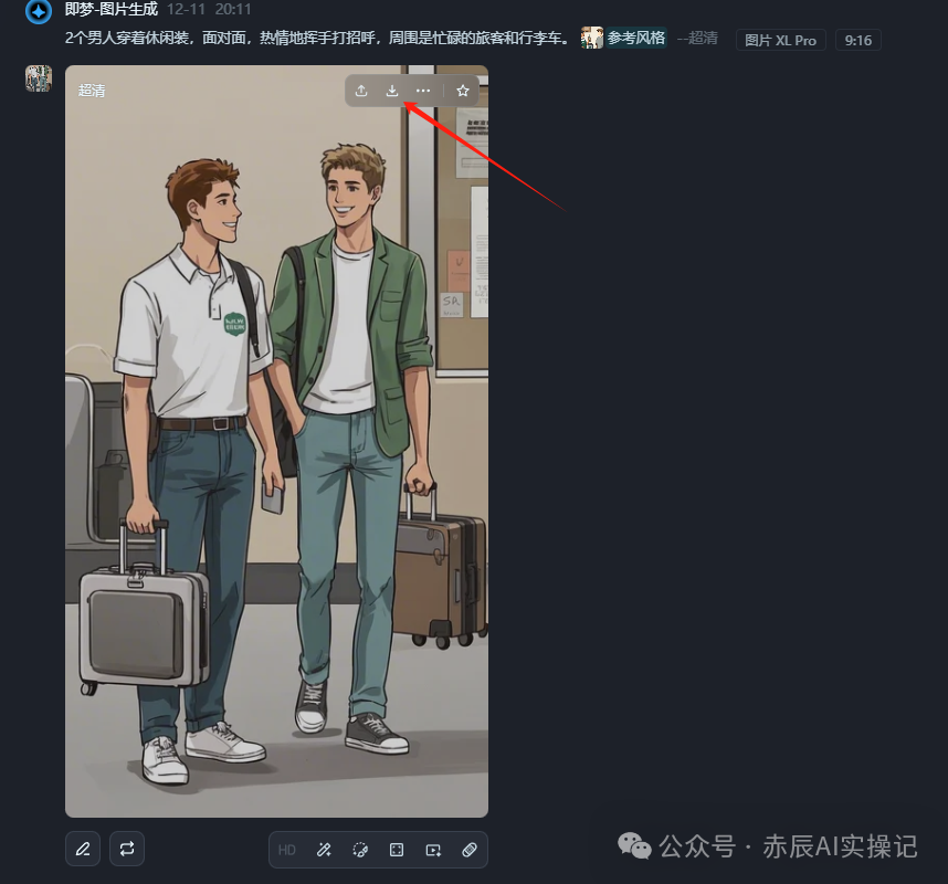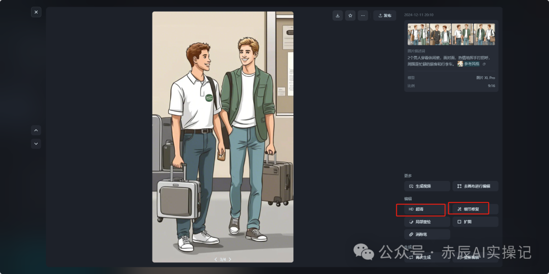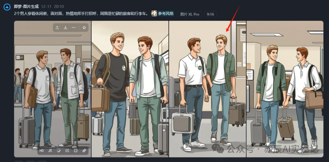 默认生图模型,设置生图尺寸,点击生成。单次生成的4张图片中,我们挑选一张最满意的。
