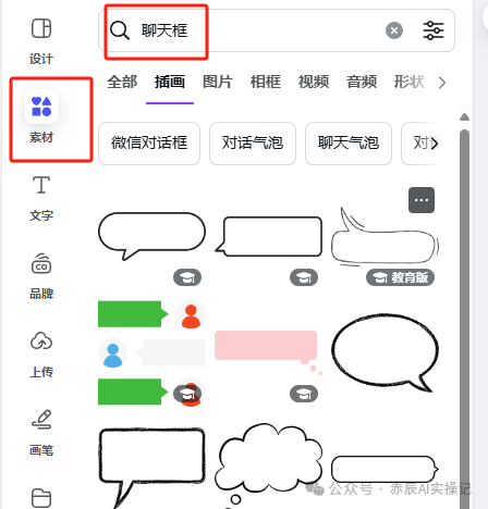 接着在素材库中,找到一个聊天框素材,调整颜色
