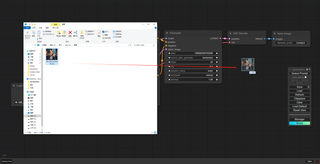 我们打开 ComfyUI,把这个图片拖拽到 ComfyUI 里: