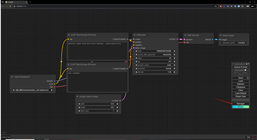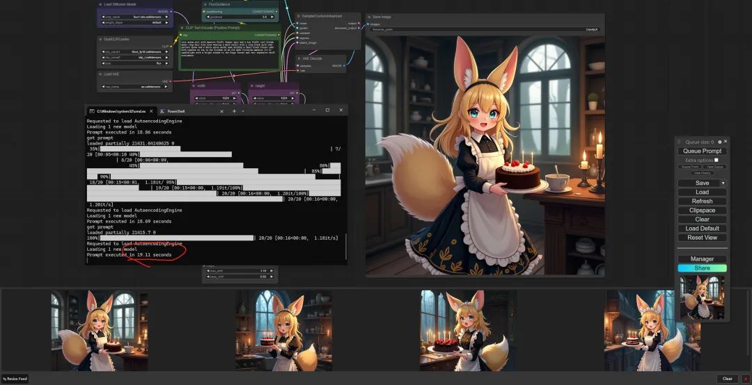 我们点击 Queue Prompt 运行整个工作流: