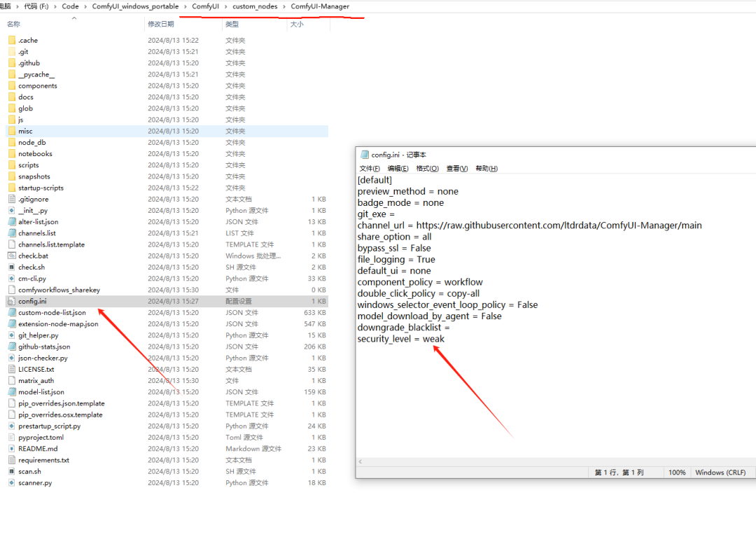 如果提示不安全,可以直接打开custom_nodes\ComfyUI-Manager\config.ini