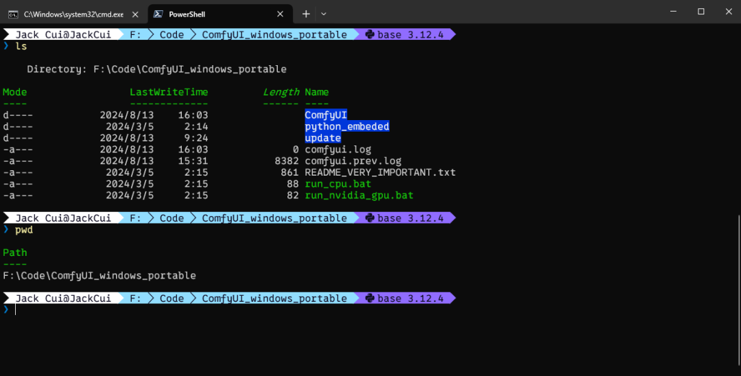 安装方法很简单,我们打开一个电脑终端,进入到 ComfyUI 项目根目录: