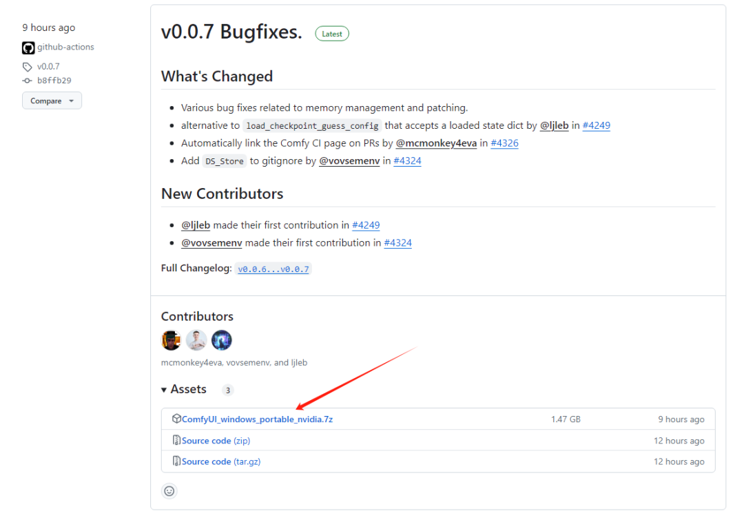 ComfyUI 的安装可以说是非常简单了,打开 releases 地址:
