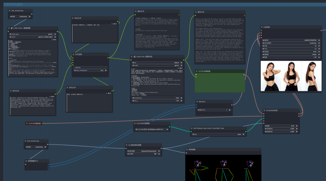 所以,会先根据姿势进行反推,然后输入一些自定义内容,再经过 LLM 的整理,提示语如下: