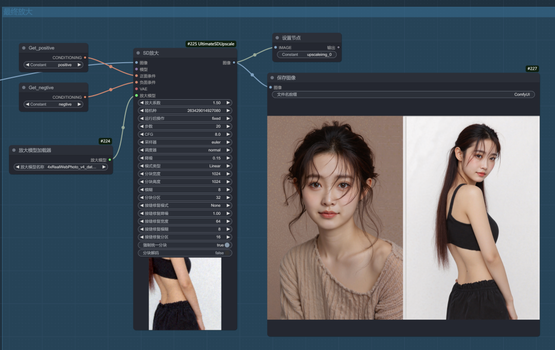 这样就完成了脸部的迁移了。最后就是放大了,用了 sdupscale 节点。