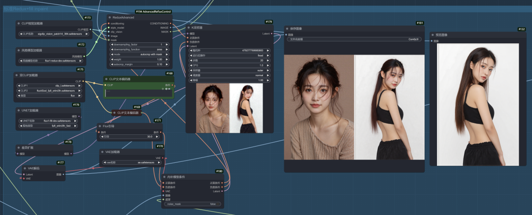 处理完蒙版后,就是之前的标准 fill+redux 流程,这样换脸我觉得是当前所有换脸方案最稳,而且最自然的。