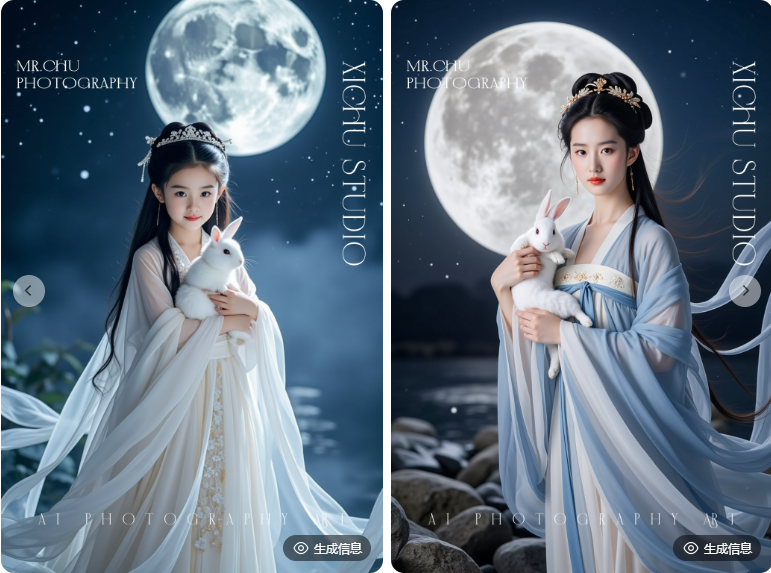 关键词:女孩,月亮,兔子,抱着动物,现实,满月,独奏,汉服,中国衣服,动物,抱着,晚上,看着观众,长发,头发装饰,天空,户外,黑发