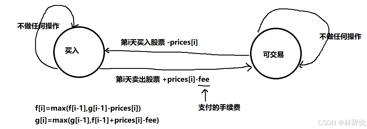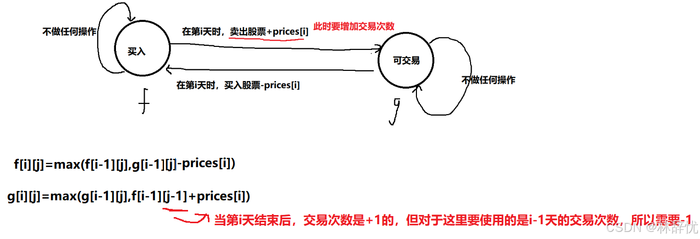 但同样的对于第i天结束时所处的状态有买了股票的"买入状态"和卖出股票的“可交易状态”