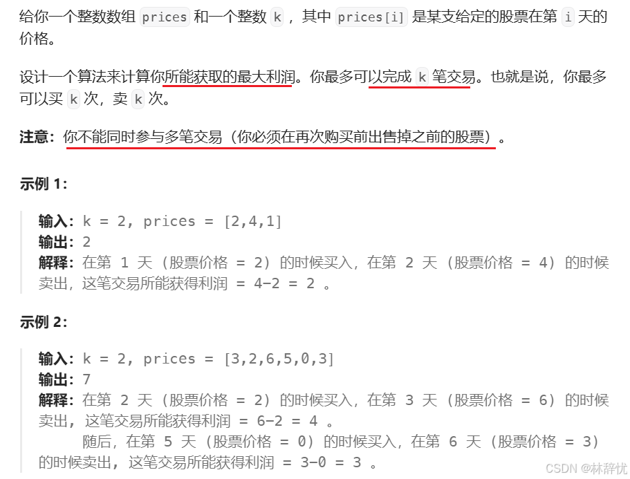OJ传送门 LeetCode<188>买卖股票的最佳时机IV