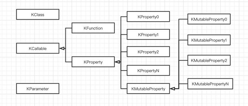 和 Java 的 AccessiableObject 一致。Java中构造方法为独立的类型,而 Kotlin 统一作为 Function 处理。Kotlin 把 Class 中的属性(Property)、函数(Funcition)甚至构造函数都看作 KCallable。