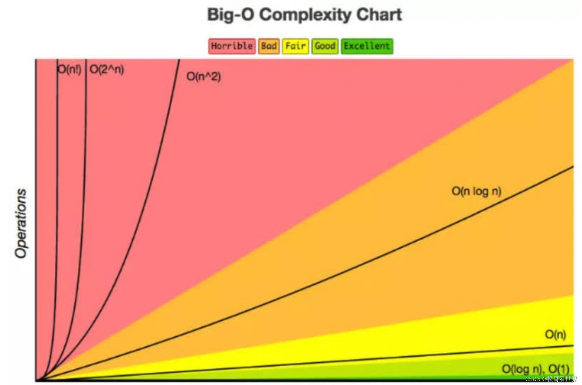 - O(1)<O(logn)<O(n)<O(nlogn)<O(n2)<O(n3)<O(2^n)<O(n!)<O(n^n)