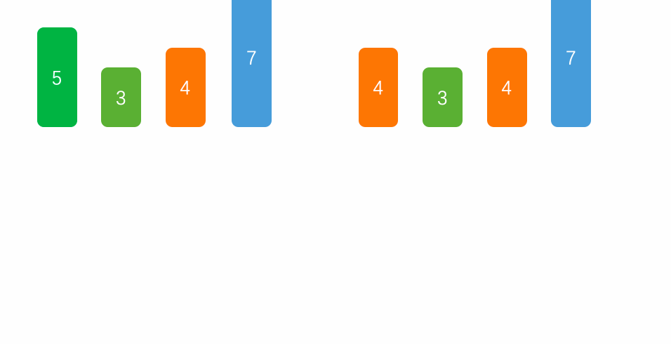 - 那么快速排序会将最后一个或者第一个做完中间值,进行7次比较。情况好的情况下,拆分成了两份就是,3,4。那么就是 7+3的平方+4的平方,7+9+16=32次。