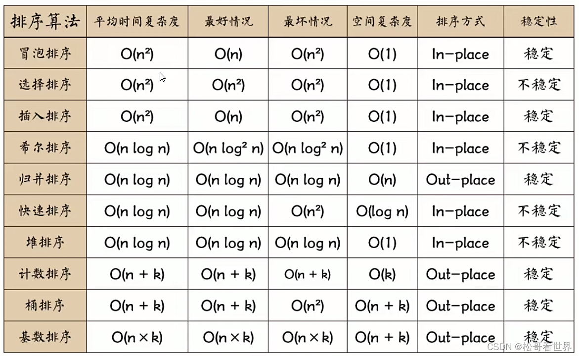 - 选择排序:(最简单,也是最没用的,没用是因为选择排序的时间复杂度高并且还是不稳定的排序方法,项目 中很少会用到)