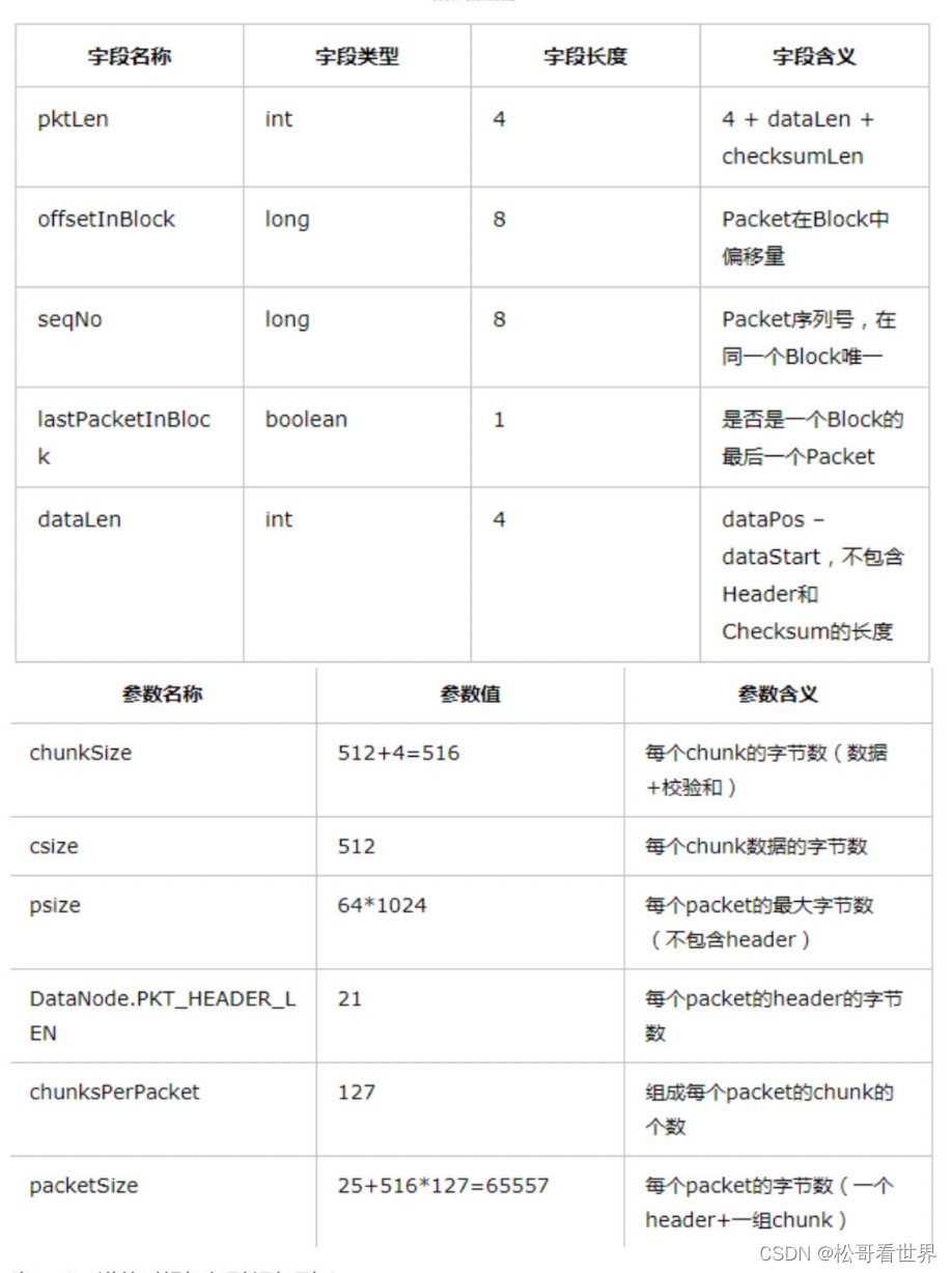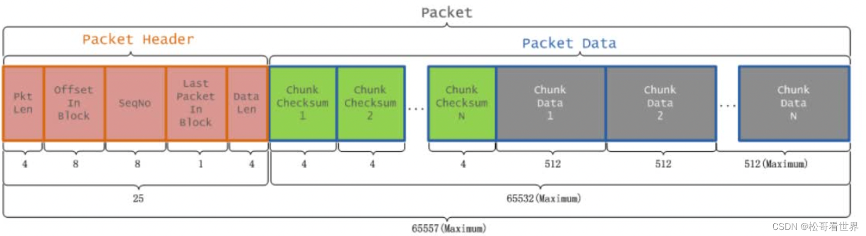 - 默认一个packet大小为64K,Block128M为2048个packet