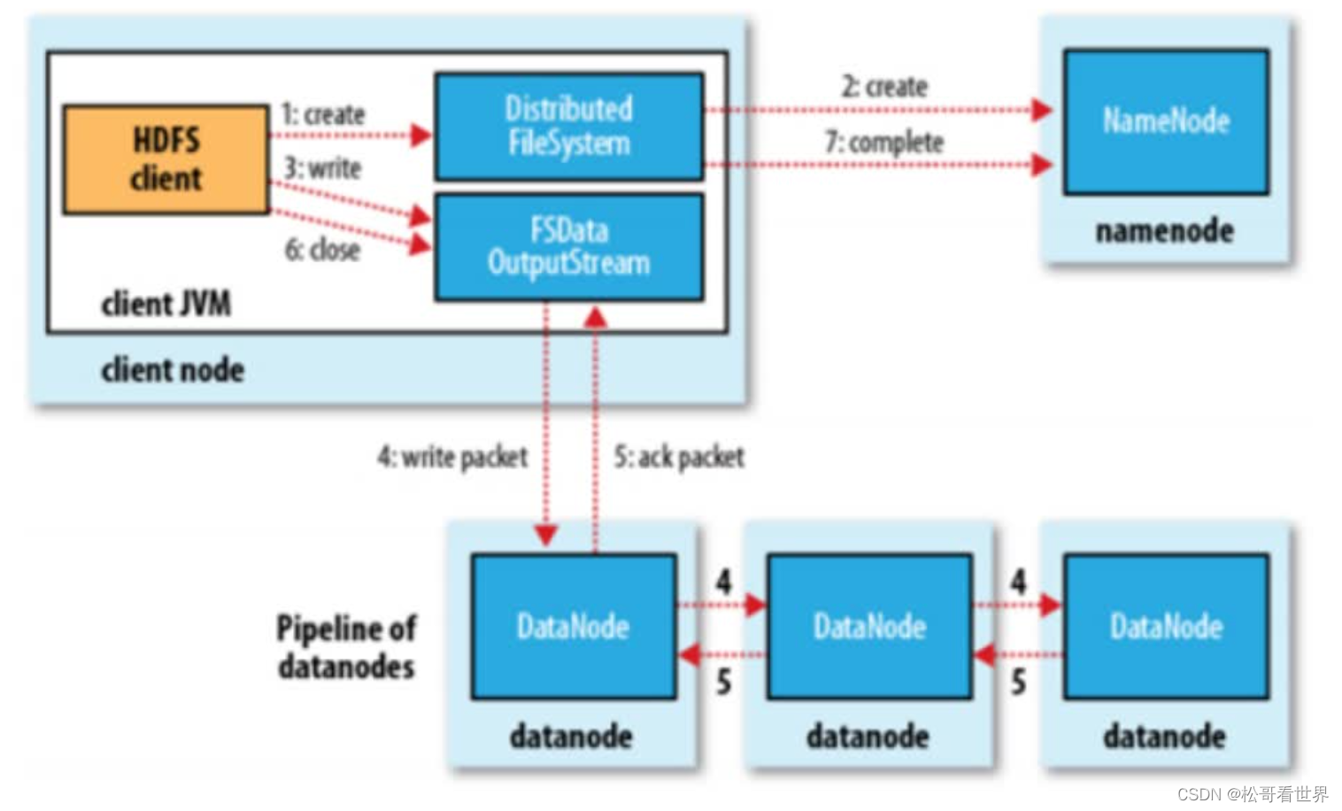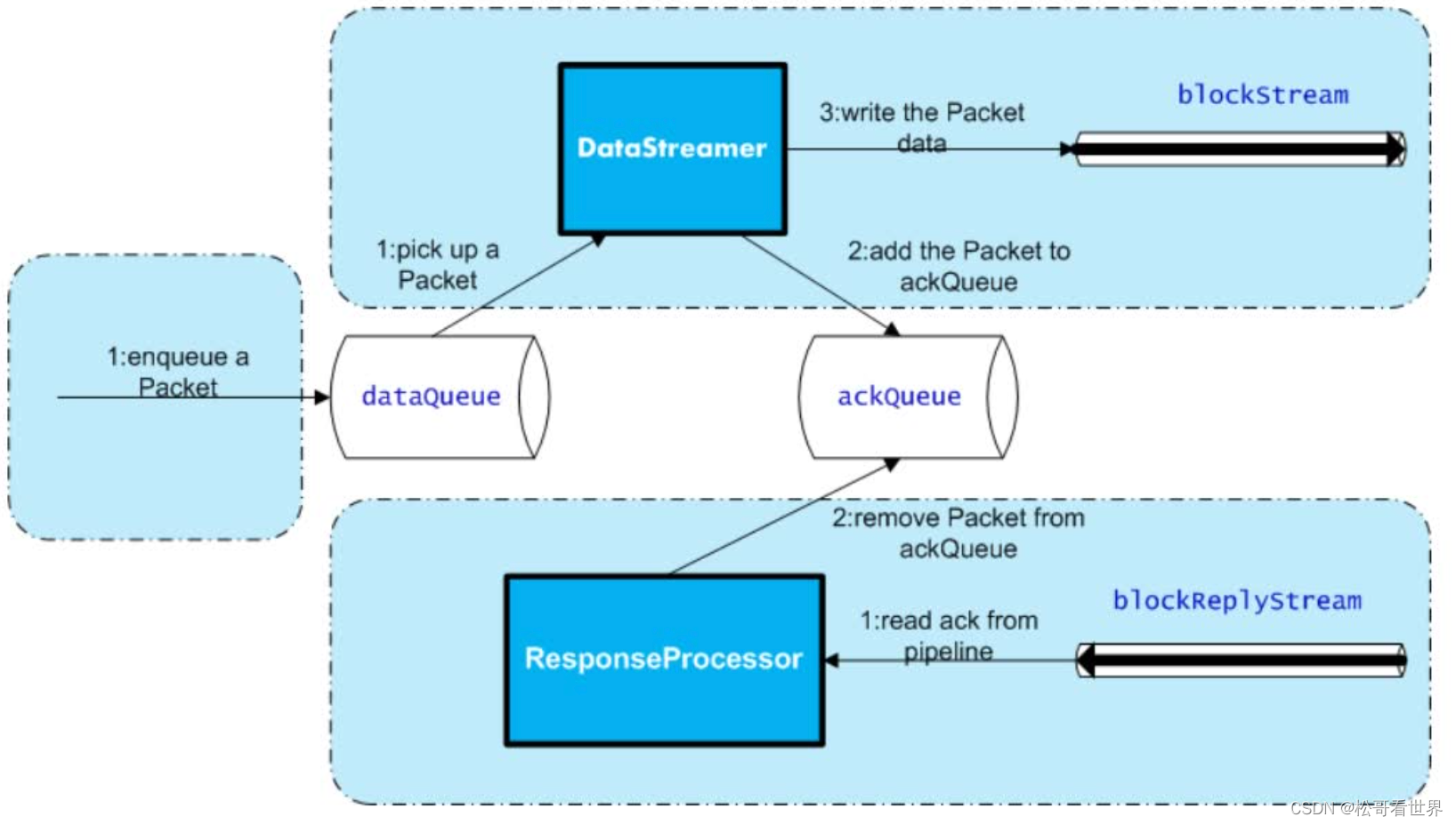 - 5. datastreamer开始从dataqueue队列上取出一个packet,通过FSDataOPS发送到Pipleline