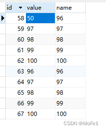 update test_1 set value = 50 where id = 58;