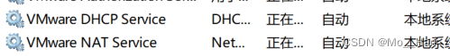 我发现我都没有问题,但是就是连不上,突然我想起有两个服务即这两个DHCP和NAT结果显示都启动着,