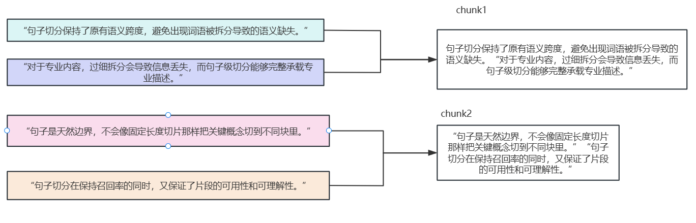 优点:因为是按照句子进行合并的能够较好的保留语义完整性
