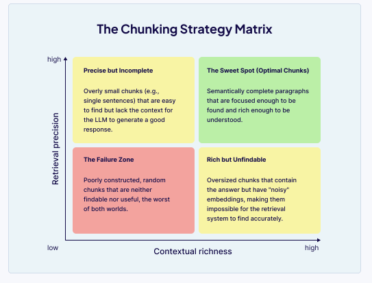 分块的核心挑战在于检索的精度和上下文完整性之间的权衡