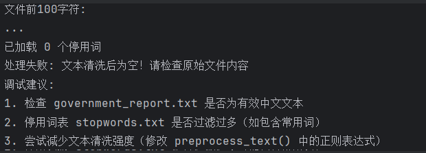 raise ValueError("文本清洗后为空!请检查原始文件内容")