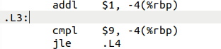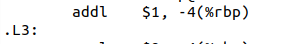 程序中的加法操作体现在每次循环对i进行加一操作,.s文件中该操作如下: