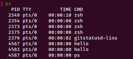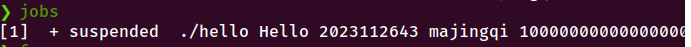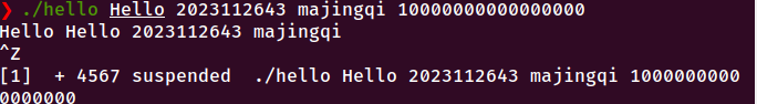 当程序执行过程中按下Ctrl Z,进程收到SIGSTP信号,暂时挂起hello进程,向父进程发送SIGCHLD。