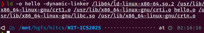 | dis_hello.s | 从hello.o反汇编得到的文本文件 | 比较重定位前后汇编代码区别 |