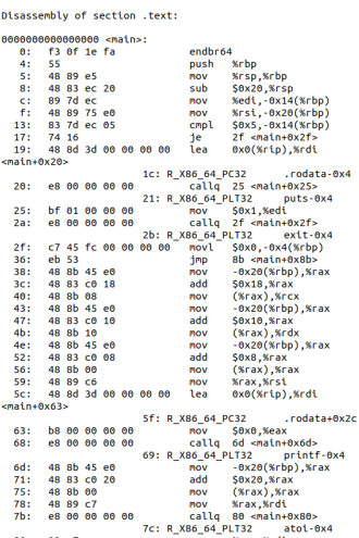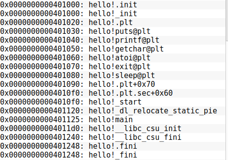 | dis_hello2 | 从hello反汇编得到的文本文件 | 比较链接前后汇编代码区别 |