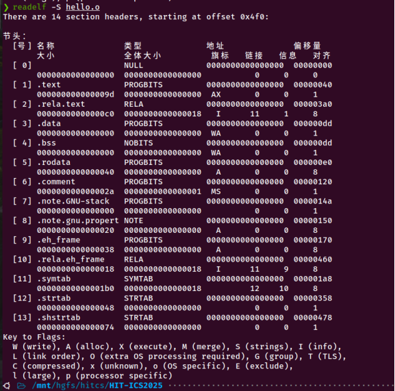 对hello.s文件进行汇编,从hello.s变为hello.o,生成机器码、ELF重定位条目。