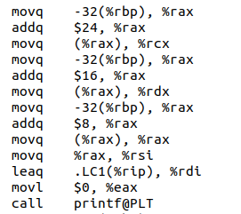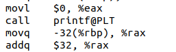 这里可以看出局部变量i存放在栈中,在for循环中每次加一,条件满足就跳转,这对应着原C程序中int i和for(i=0;i<10;i++)
