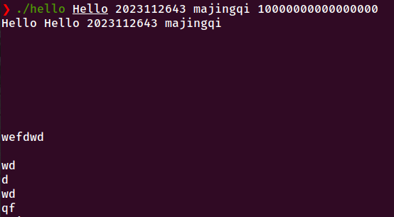 这里定义了两个字符串常量,分别为"用法: Hello 学号 姓名 手机号 秒数!\n"和"Hello %s %s %s\n"。