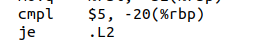 对于原C语言中的表达式argc!=5,在.s文件中表示为