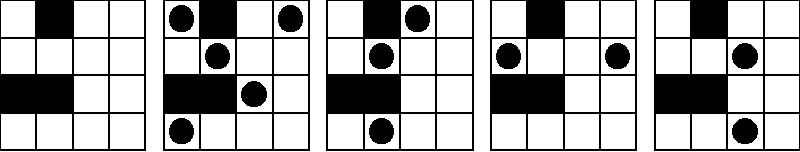 The goal is to place as many blockhouses in a city as possible so that no two can destroy each other. A configuration of blockhouses is legal provided that no two blockhouses are on the same horizontal row or vertical column in a map unless there is at least one wall separating them. In this problem we will consider small square cities (at most 4x4) that contain walls through which bullets cannot run through.